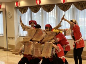 続いては太鼓に合わせて扇子の踊りに南京玉すだれです。