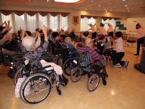 歌やリズムに合わせて大きく体を動かし、普段動かしていない筋肉を動かして、身体が温まってきました。