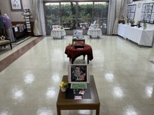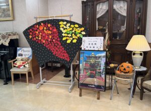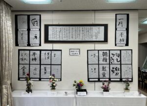 入居者様の、普段取り組まれている書道や塗り絵の作品を今年も展示させていただきました。