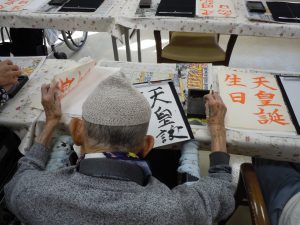 今月の書道クラブのお手本は、2月の記念日にちなんで「天皇誕生日」です。