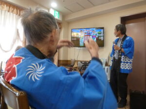午前中入居者皆様と東京音頭を踊り、午後は夏の屋台をイメージしヨーヨーつりやひもくじなどで、楽しんでいただきました。