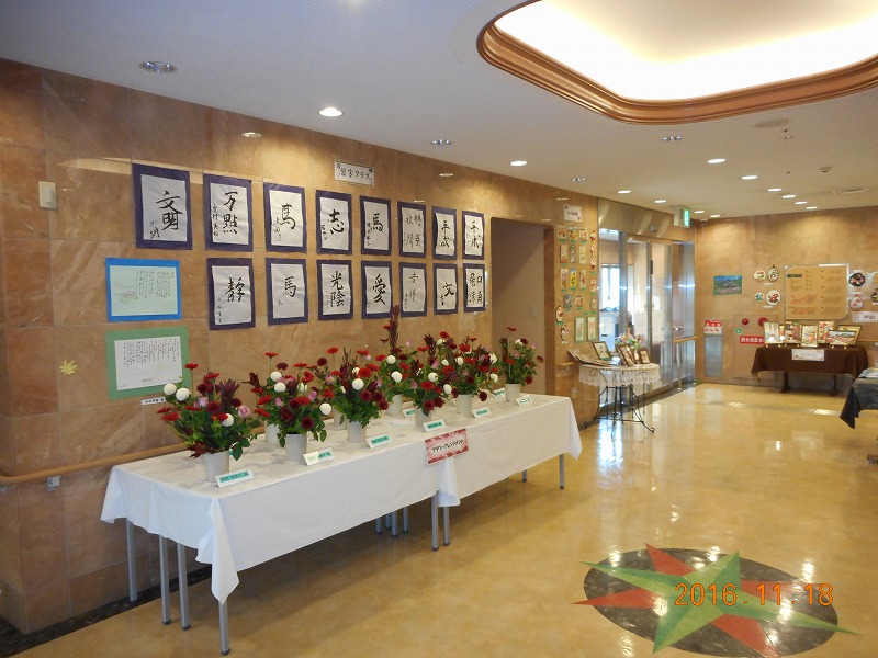 書道クラブとフラワーアレンジメントの作品集