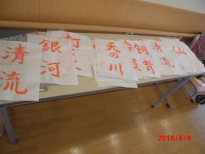 今回のお手本は、「アジサイ」「打ち水」「地蔵盆」「清流」「天の川」「うみ」等です。