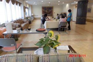 今回は、スタッフの差し入れのお抹茶をたてて、練りきりは、季節の「うさぎ」や「満月にススキ」、「キキョウ」、「青柿」を選んでいただき、一番人気は「キキョウ」でした。