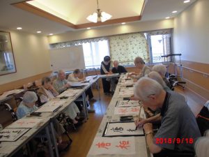 入居者の皆様それぞれお好きなお手本を選ばれ、熱心に書いておられました。