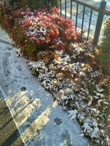 歩道や歩道の樹木にも積もってました。