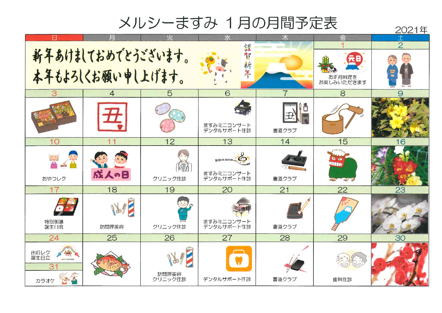 トップページ > 新着情報 > ますみの新着情報 > メルシーますみ_令和3年1月予定表