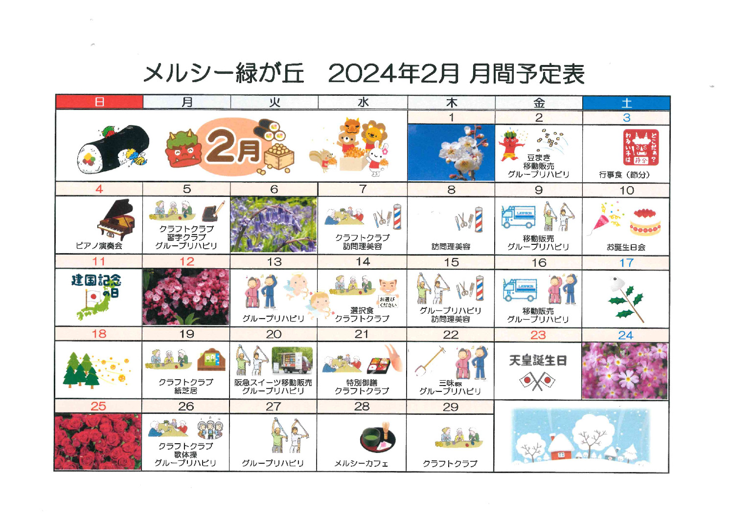 メルシー緑が丘_令和6年2月予定表