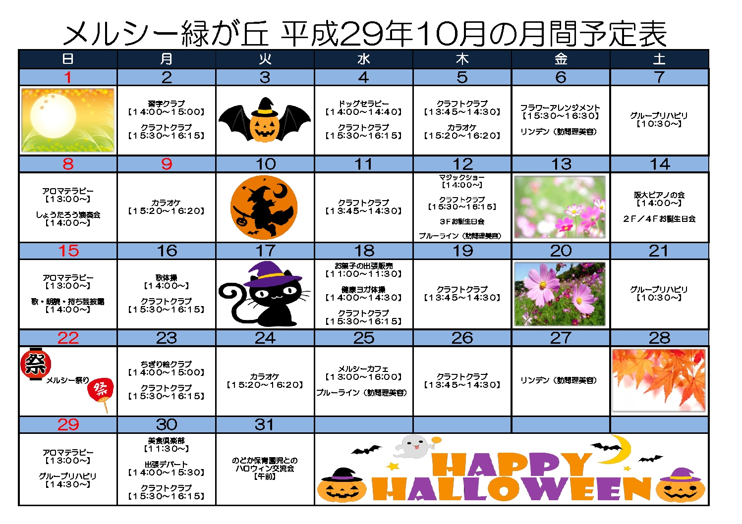 トップページ > 新着情報 > 緑が丘の新着情報 > メルシー緑が丘 平成29年10月予定表